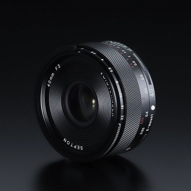 The Voigtlander Septon 40mm f2 Aspherical E-mount incorporates electronic contacts, enabling lens usage information to be reflected in the Exif data of captured images. Furthermore, it  incorporates a distance encoder, making it compatible with models featuring 5-axis in-body image stabilisation that utilises subject distance information for shift blur correction. It also enables magnified viewfinder display via focus ring operation. The aperture ring features 1/3-stop clicks.