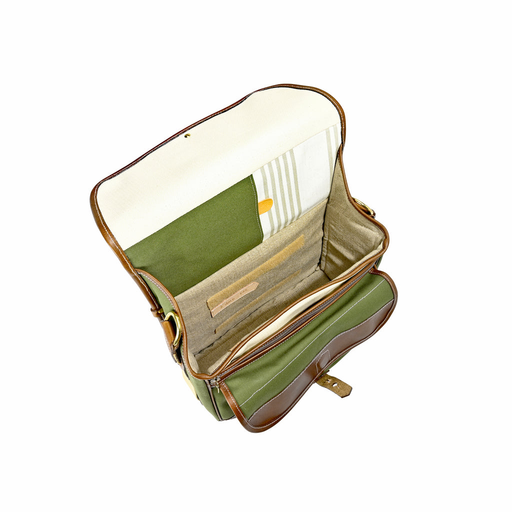 Fogg B-Sharp Satchel Green Fabric with Havana Leather