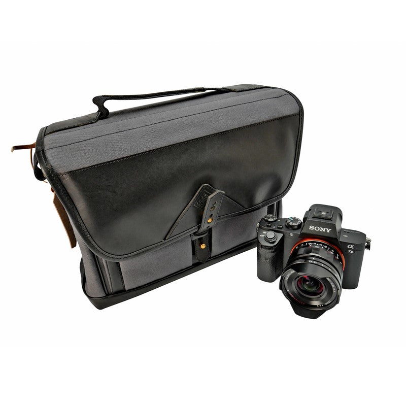 Fogg Last Waltz Satchel Grey Fabric with Black Leather