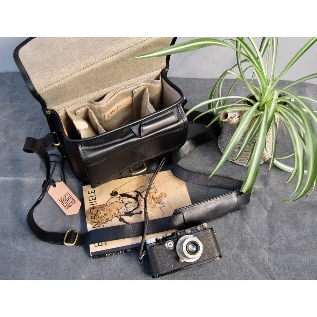 The Satchmo is derived from Fogg's own version of a carpenter's pouch. The Satchmo is made for a lifetime of use with impervious pure hide and lined in linen and padded internal compartments. Comes complete with a stretch of chamois leather as a lens wrap or demister.